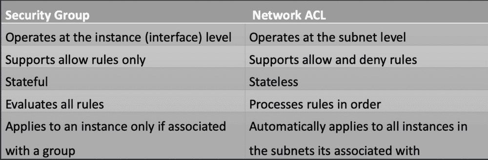 Here is the difference between AWS security group and NACL.